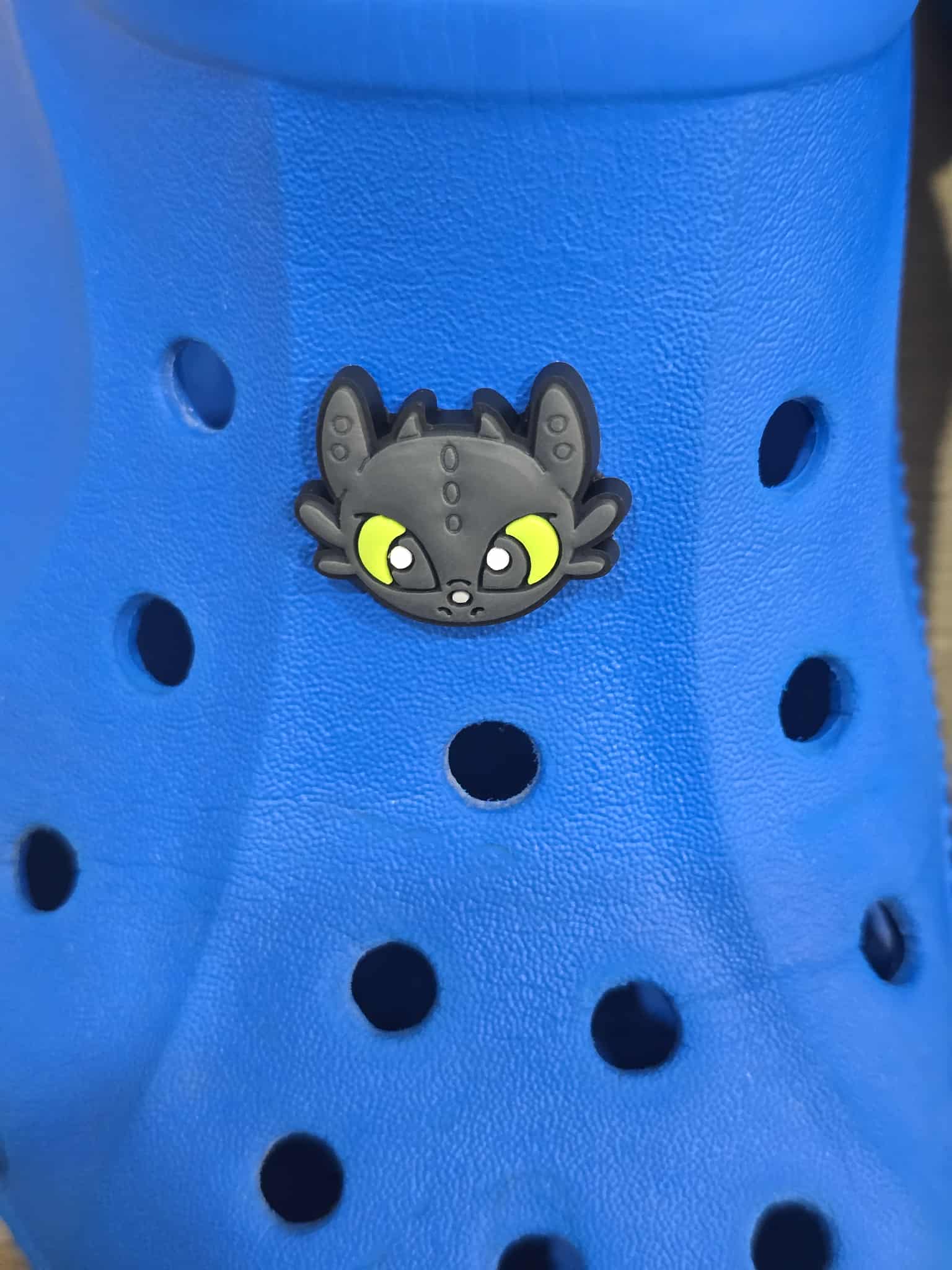Add a magical touch to your Crocs with these exquisite How to Train Your Dragon charms featuring Toothless and the Light Fury. Crafted with attention to detail, they seamlessly decorate your footwear while showcasing your love for the beloved dragons. Perfect for fans seeking to blend style with fandom, these charms elevate everyday wear into a refined statement of personality and imagination.