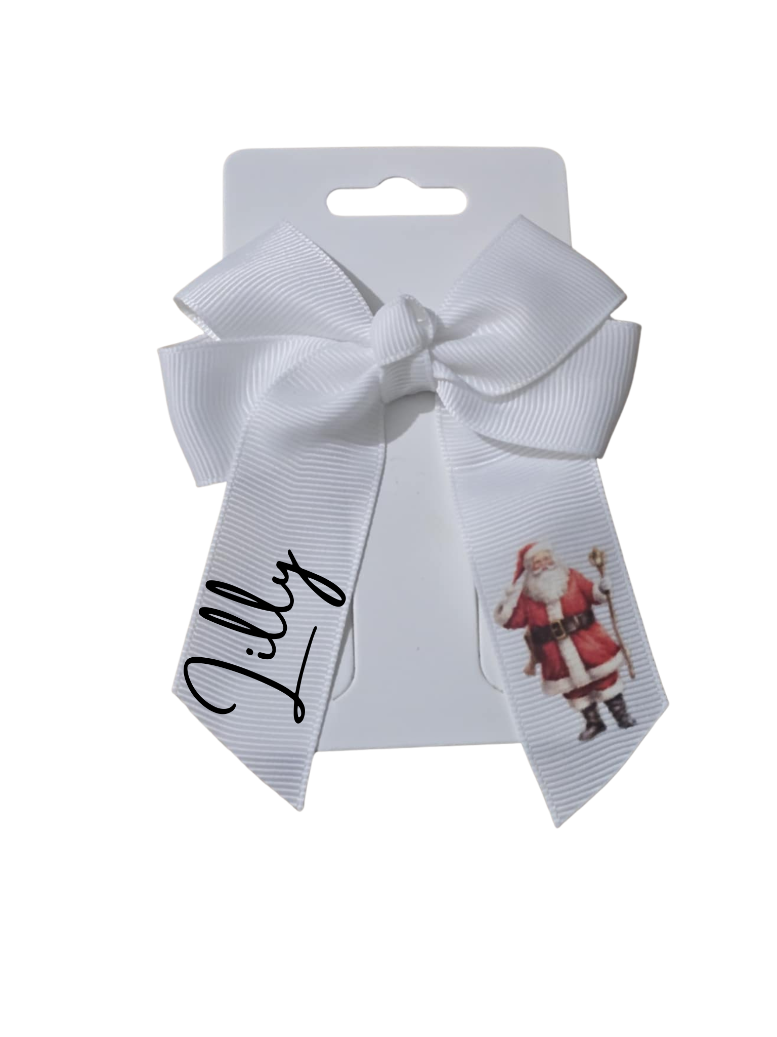 Personalised Christmas hair bows, measuring 4 inches, offer a charming and elegant festive accessory.