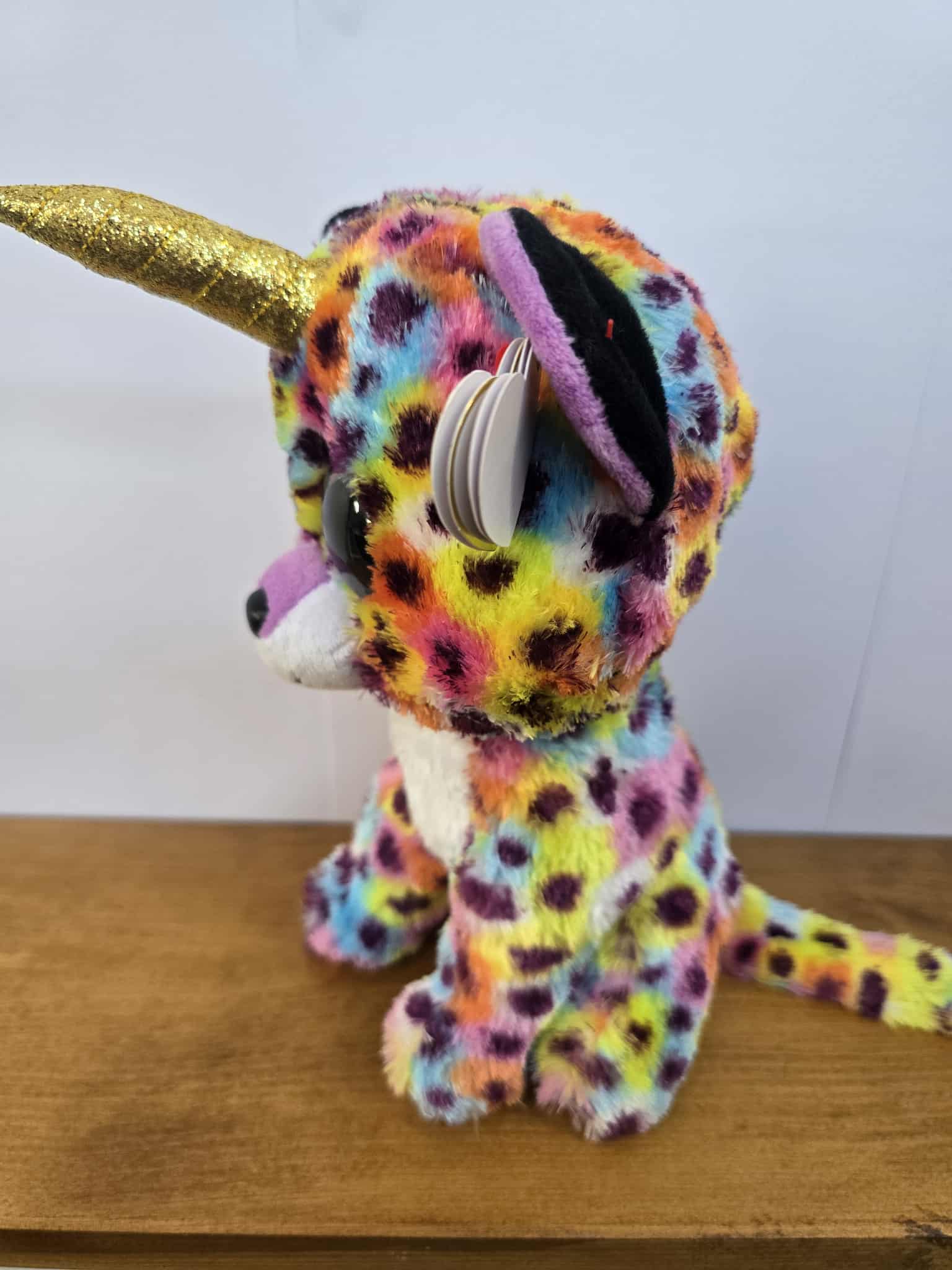 Meet Giselle, the fabulous Ty Beanie Boo leopardcorn, wrapped in vibrant tie-dye colours and ready to leap into your heart! With her adorable sparkly eyes and a special Ty Heart, she's all set to spread joy and fun wherever she goes!
